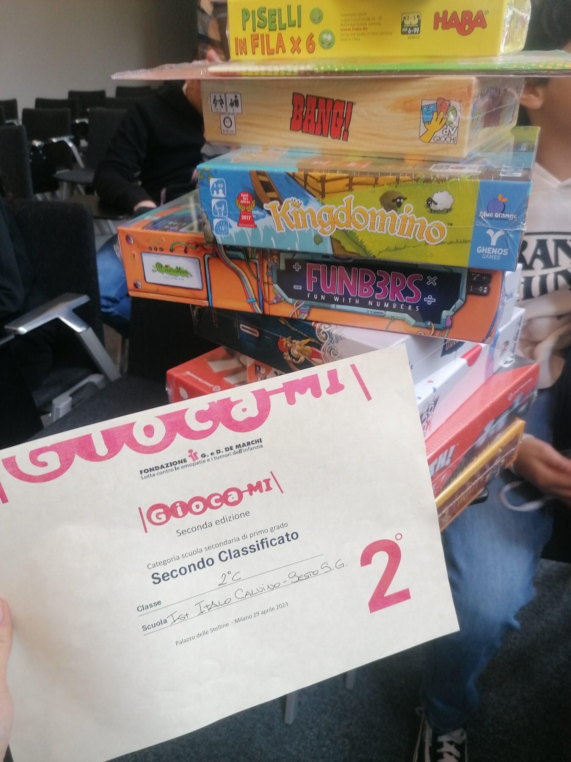 In occasione della cerimonia di premiazione, tenutasi a Palazzo Stelline il 29 aprile 2023, alla classe è stato donato un kit di 11 giochi da tavolo didattici che verrà messo a disposizione di tutte le classi della scuola.